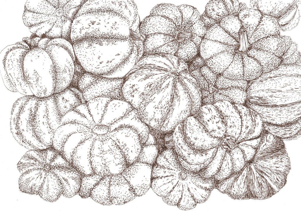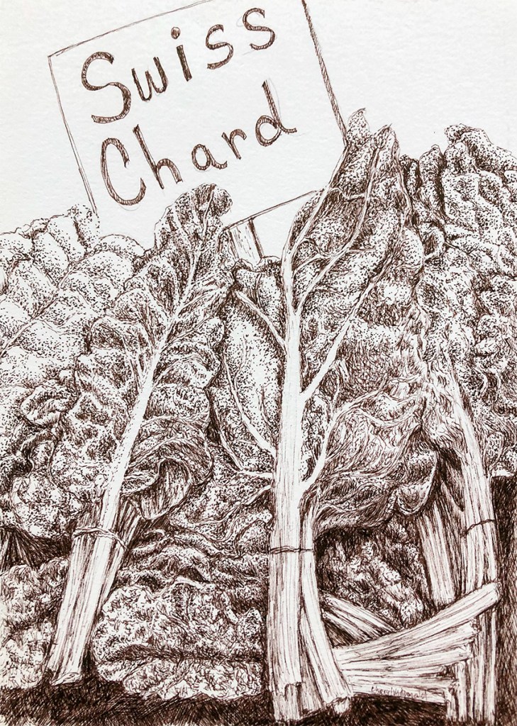 Because I am working almost full time right now, I don’t have much time for making art at least not big paintings. I have been continuing to create small pen and ink drawings using micron pens. I finish one about every week. They are very detailed and mostly I am doing food. Things that might be good for restaurant menus or cookbooks. And because I have so many photos of foods from the farmers markets and things I have made, it seems like a good choice. Maybe someday I will write a cookbook, who knows. I am really loving the process of these. I carry them with me and when I have a few minutes I work on them. Not only am I continuing to create, but it is good therapy for reducing stress. My mind clears and I relax. Minimal tools and mess. I have to say it doesn’t really feel like making art, because it is more illustrative than creative. Keeping my skills up, actually making them better, waiting for sparks of creativity to hit me. Nothing wrong with illustration and maybe that will come to something. But for now it works while I continue to find my way forward on this next big adventure.