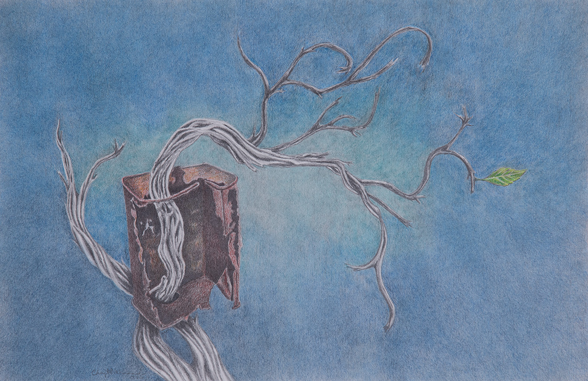 This pencil painting, “Life Goes On” was done in 2015, which is about mid-point to this sojourn I have been on, and is part of the “Left Hanging in Space” Series.